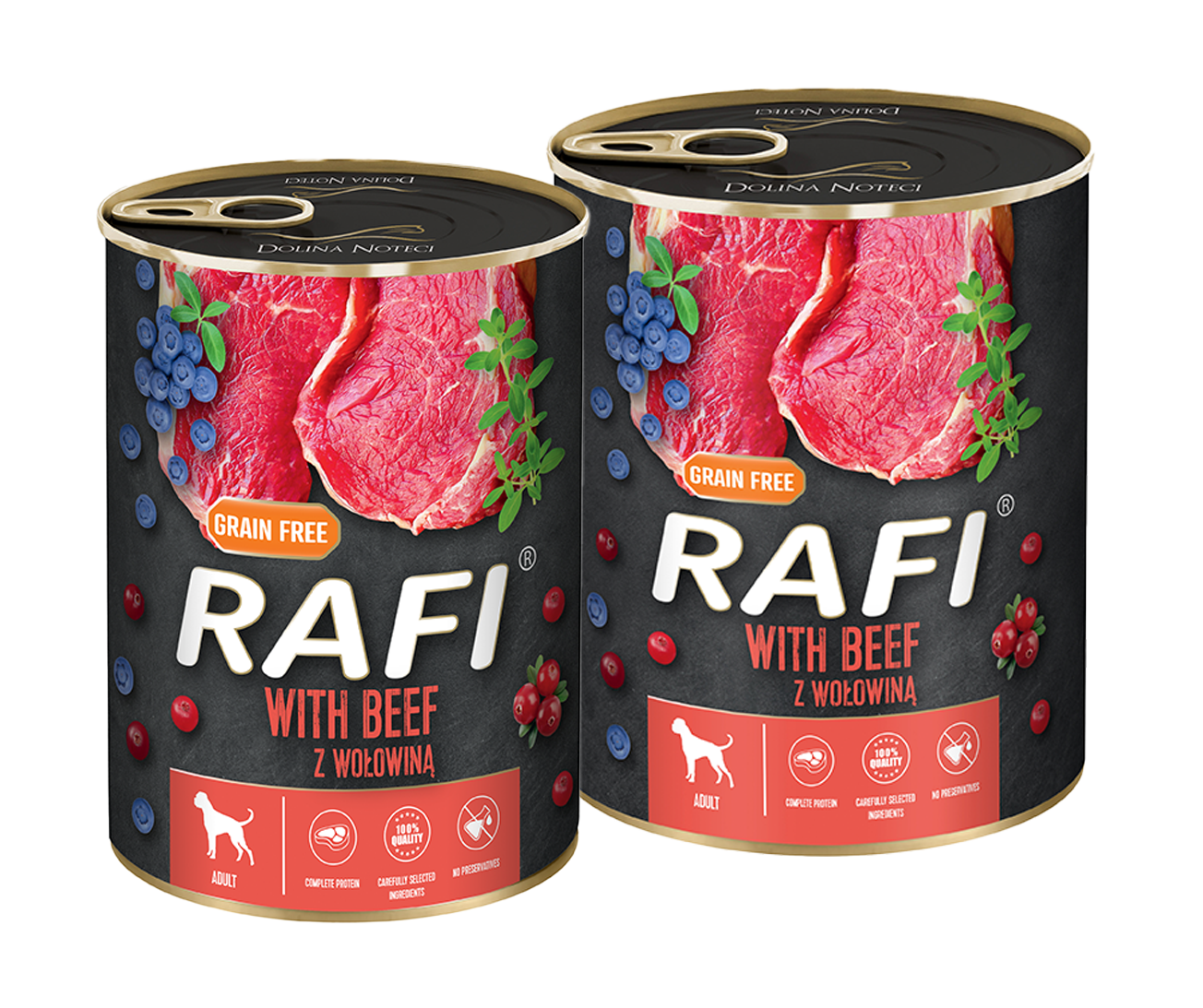 RAFI with beef is easily digestible and rich in protein. The addition of beef guarantees a high content of lysine, leucine, and isoleucine, as well as providing selenium, iron, and copper, which play an important role in strengthening the immune system. These substances stimulate the antioxidant properties of body fluids and play an important role in regulating skin function.