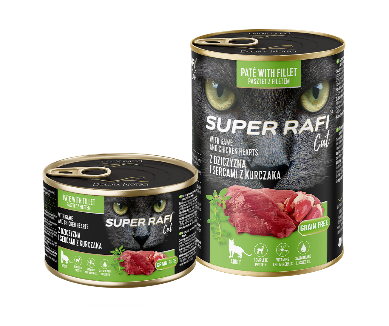Super Rafi Cat with game and chicken hearts is a complete food for adult cats, carefully formulated to meet their daily nutritional requirements. With 70% meat and animal-derived ingredients – including chicken fillet, game meat and hearts – it provides highly digestible, top-quality protein with excellent biological value.
