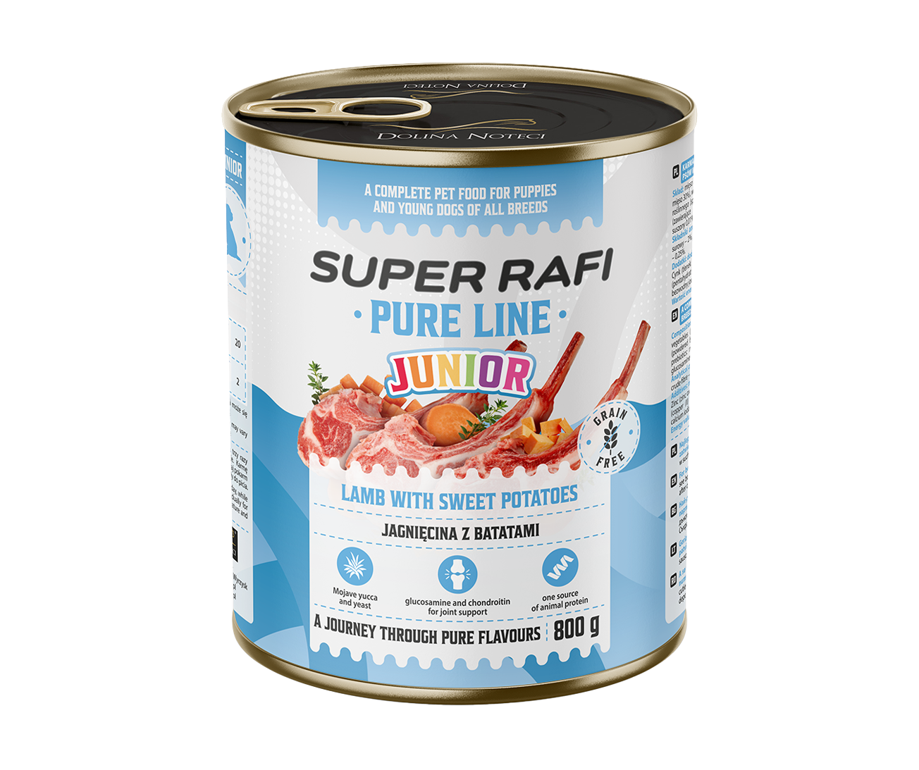 Super Rafi Pure Line – lamb with sweet potatoes is a complete, single-protein food for growing dogs of all breeds. It is an excellent choice for dogs with sensitivities or allergies to proteins other than lamb, providing gentle, well-tolerated nutrition.